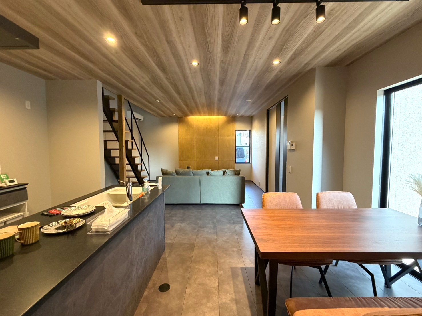 ブラック×グレーが映えるデザイナーズ分譲完成!LDKは22.2帖と広々でこだわりの造作洗面や間接照明、スケルトン階段も雰囲気◎