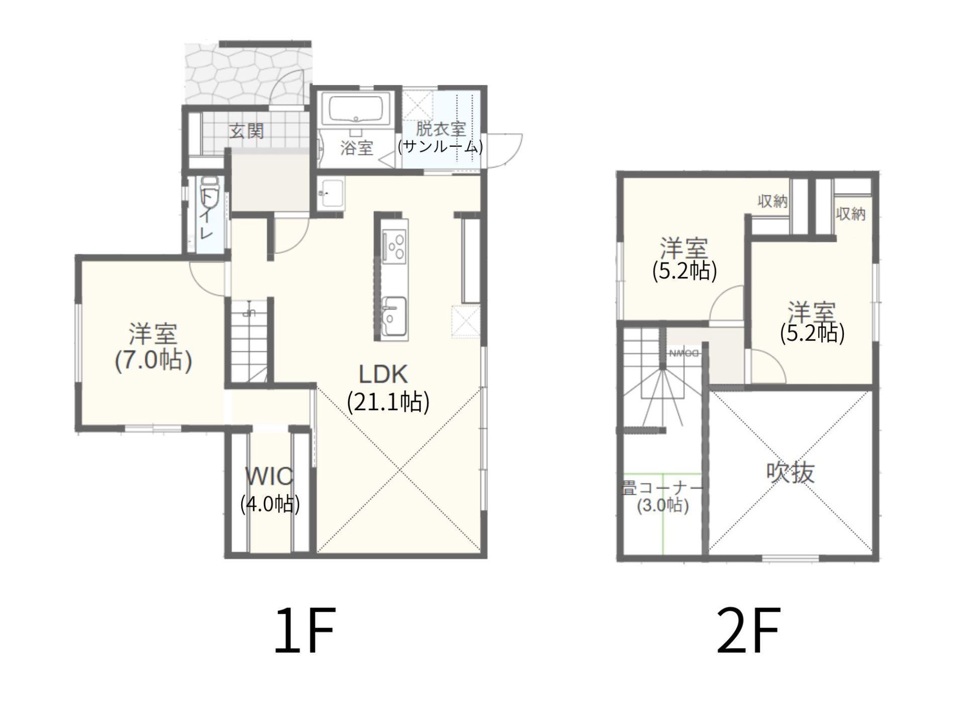 1階:LDK21.1・洋室7.0・WIC4.0・洗面・浴室・WC・SR脱衣室
